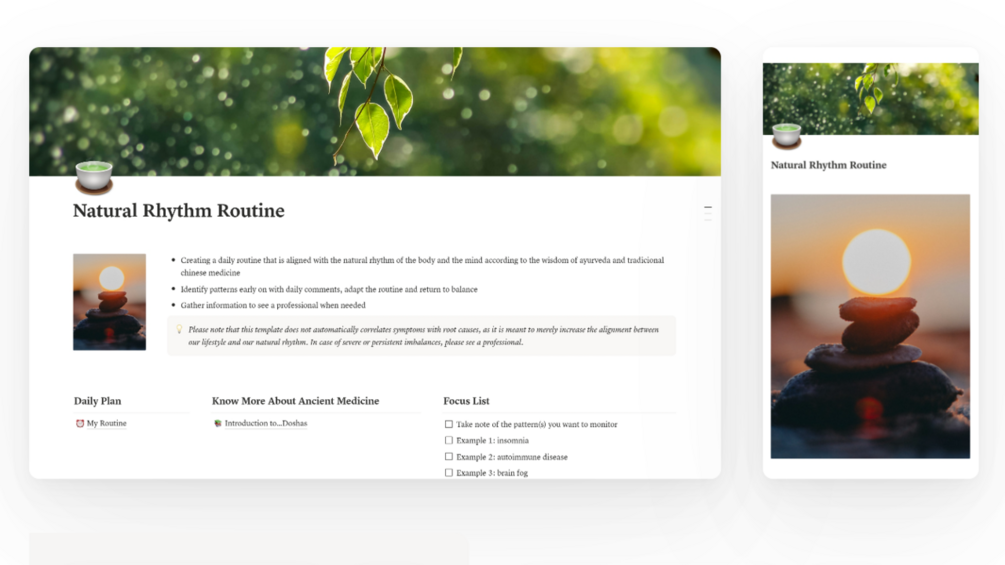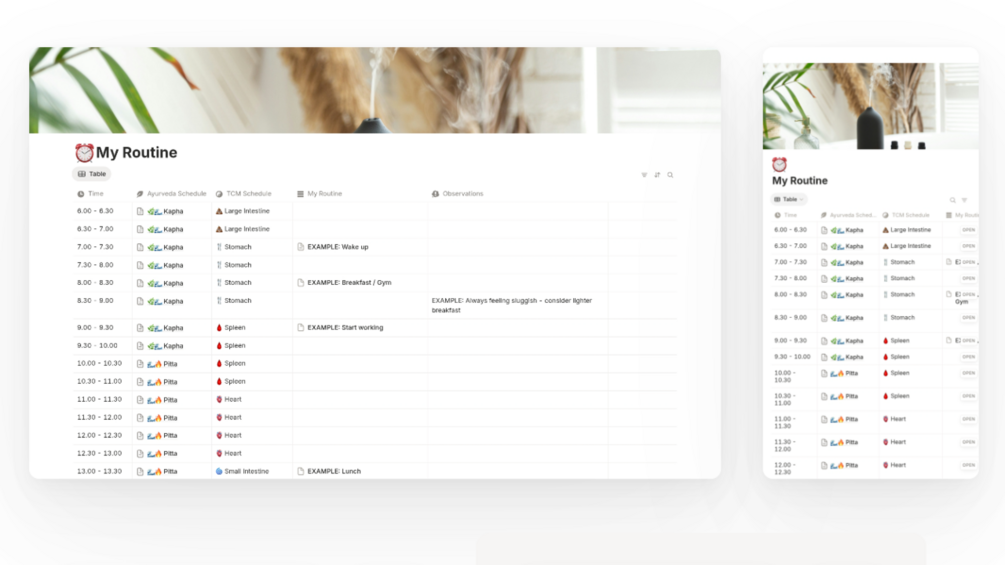 Routine planner to align our own daily schedule with the schedules suggested by ayurveda and traditional chinese medicine, in order to keep the balance between the different parts of our body and productivity/rest cycles.